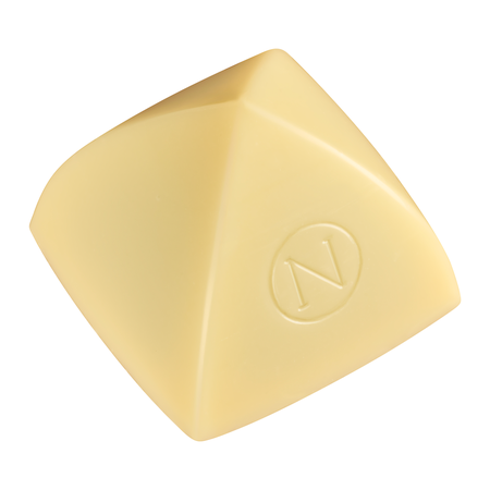 Ein zart-cremiges Praliné aus Pistazien-Butterkeks, umhüllt von einer süßen Schicht aus weißer Schokolade.